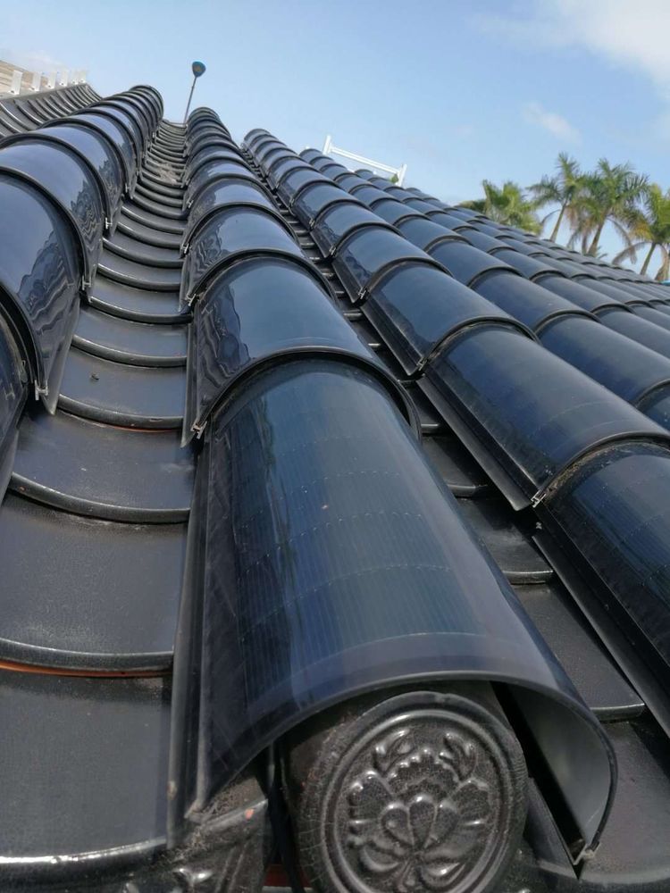 琉璃瓦式的BIPV产品,从外观上是现在已知BIPV产品的精品,兼顾发电和建筑美学,缺点是单位面积容量低,价格高昂,仍是高压直流系统。